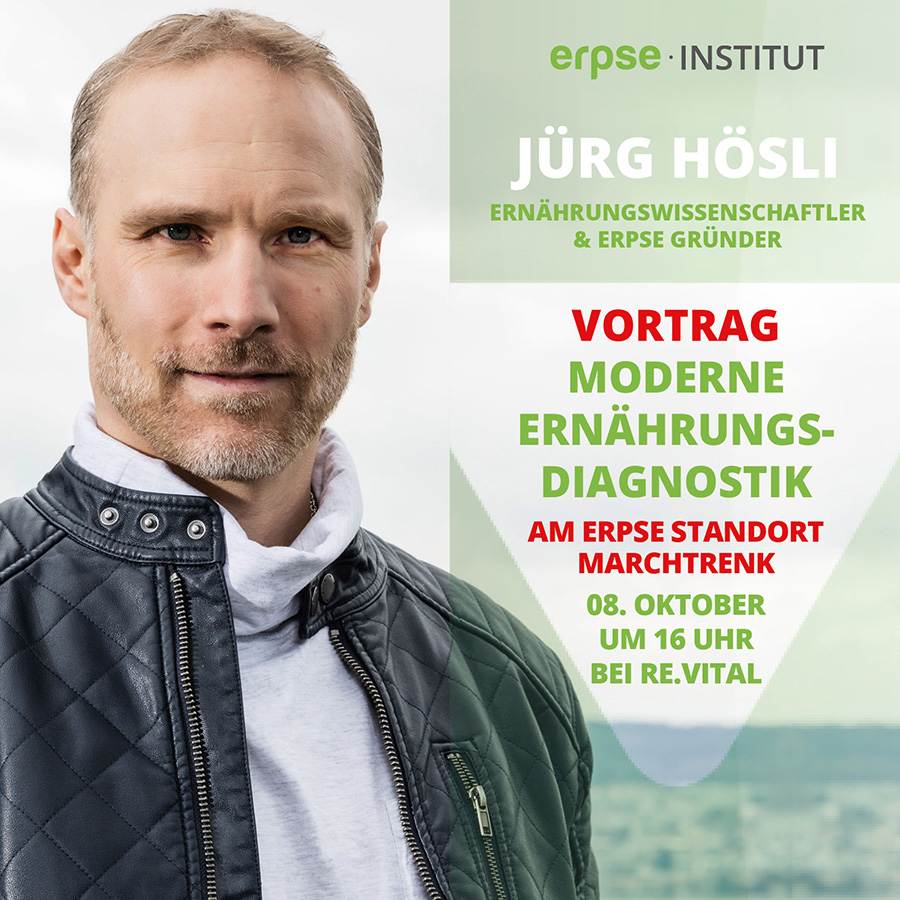 Jürg Hösli, Gründer des erpse Instituts und Ernährungswissenschaftler, stellt euch zusammen mit Dr. Ronald Ecker, Arzt für Allgemein- und Sportmedizin und Geschäftsführer von REVital, das erpse Institut vor. Ihr seid herzlich eingeladen!